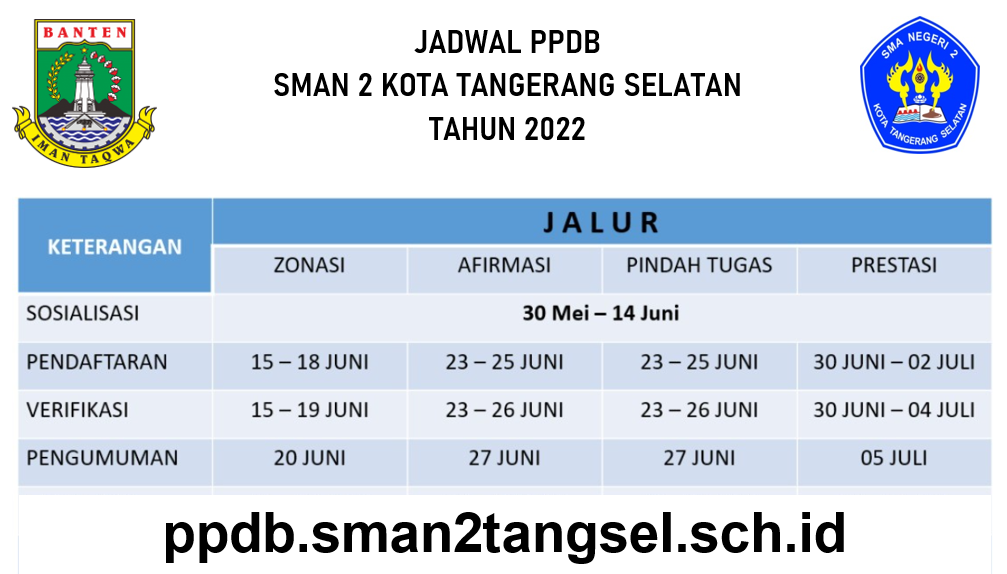 Untuk kelancaran penyelenggaraan PPDB Tahun Pelajaran 2020/2021 di Provinsi Banten diatur dengan jadwal sebagai berikut :